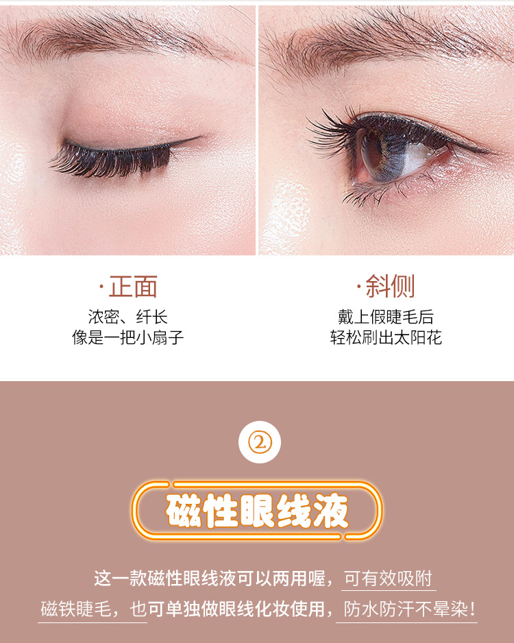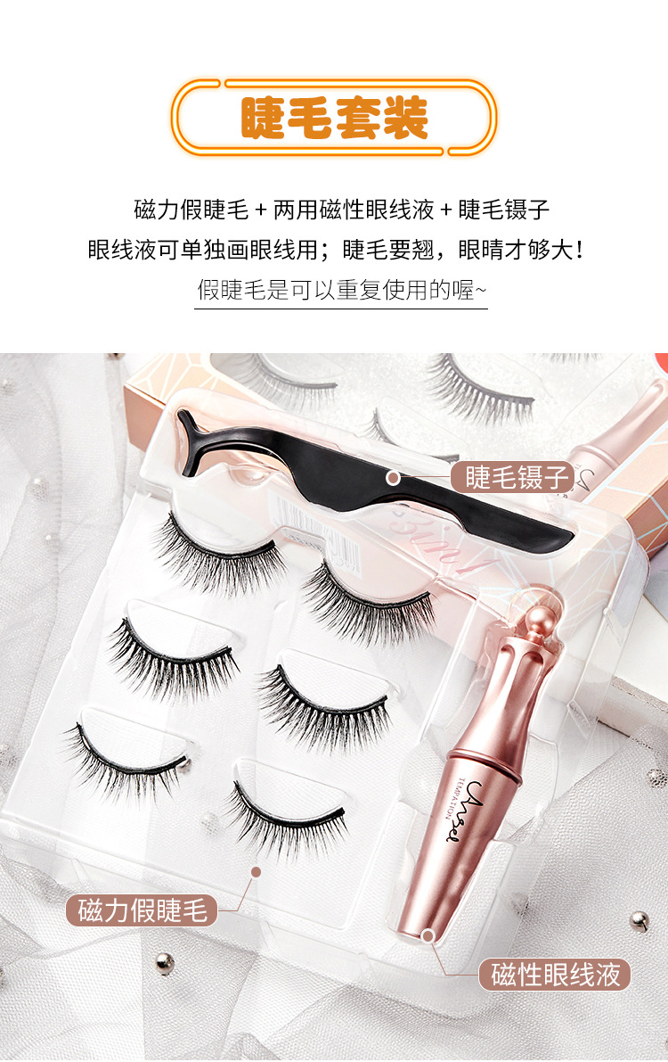 抖音同款磁性假睫毛套装 磁性眼线液免胶水5磁力石眼睫毛跨境彩妆