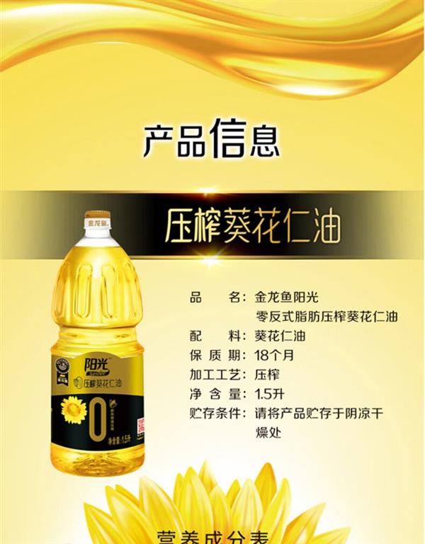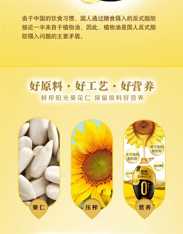 【健康好油*6瓶】金龙鱼阳光零反式脂肪压榨葵花仁油 非转/压榨/特级/1.5L×6