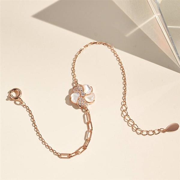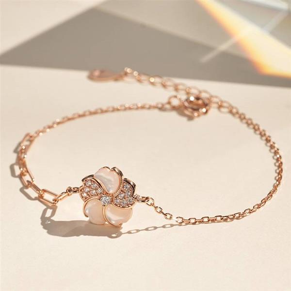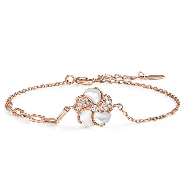 中国黄金S925银镶白贝锆石五瓣花手链ZGHJ220462